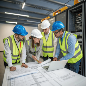 During my involvement withDuring my involvement with retrofit projects, I saw firsthand what it takes: civil engineers prepare the site, architects draw up plans, construction crews build the shell, electricians and plumbers install foundational systems, and IT specialists fit out wiring and racks. The general contractor65 orchestrates everyone while consultants ensure every code and standard is met. Here is the typical team composition: